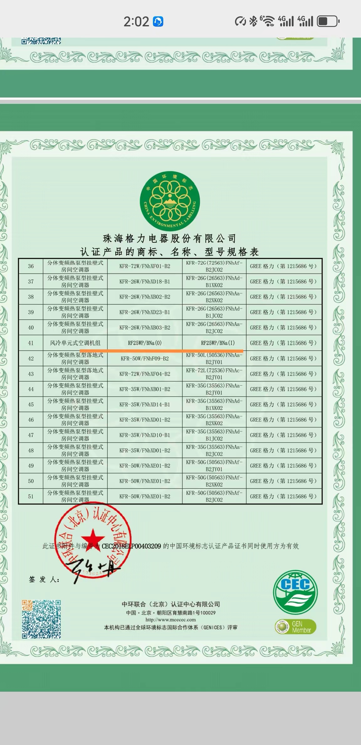 2 | 空调 | 1(台) | ¥6,700.00 | ¥6,700.00 | 产地:**;中国国家强制性产品认证证书扫描件:查看;中国国家强制性产品认证证书有效期:2026-05-08;中国节能产品认证证书扫描件:查看;中国环境标志产品认证证书扫描件:查看;中国节能产品认证证书编号:CQC207****点击查看4304;中国节能产品认证证书有效期:2025-09-07;中国环境标志产品认证证书编号:CEC 005 914****点击查看****点击查看548256N;中国环境标志产品认证证书有效期:2025-05-08;冷暖类型:冷暖;定频/变频:变频;匹数:正3P;能效等级(GB21455-2019):3级;能效等级:3级;控制方式:遥控;扫风方式:上下扫风;适用面积:32-50㎡;室内机型号:KFR-72LW/(72536)FNhAc-B3JY01;室外机型号:KFR-72LW/(72536)FNhAc-B3JY;全年能源消耗效率(APF):0;制冷季节能源消耗效率(SEER):0;制热季节性能系数(HSPF):3.36;能效比:3.36;制冷剂:R32;室外机防水等级:IPX3;制冷量(W):7210W;制热量(W):9110W;内机噪音dB(A):42dB(A);外机噪音dB(A):56dB(A);循环风量(m3/h):1210m3/h;颜色分类:白色;产品特色:变频;额定电压/频率:220V;质保 |